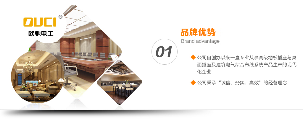 浙江欧驰智能科技有限公司是目前国内专业从事高级地板插座与桌面插座及建筑电气综合布线系统产品生产的现代化企业,公司坐落在“中国电器之都”浙江乐清市柳市镇工业区,毗邻104国道,甬台温高速公路,火车站,交通十分便利。
